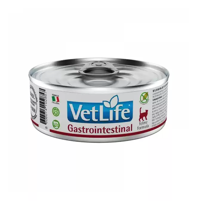 Vet Life Gastrointestinal Cat Wet Food es un alimento húmedo y medicado para gatos formulado para la reducción de los trastornos agudos de la absorción intestinal en gatos. Formulado con ingredientes de elevada calidad y digestibilidad. Lata de 85 g.